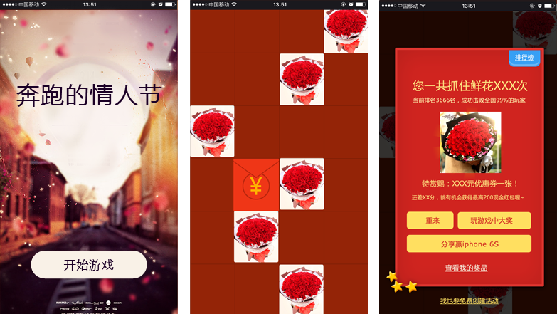 鲜花行业营销微信游戏案例之《奔跑的情人节》游戏截图